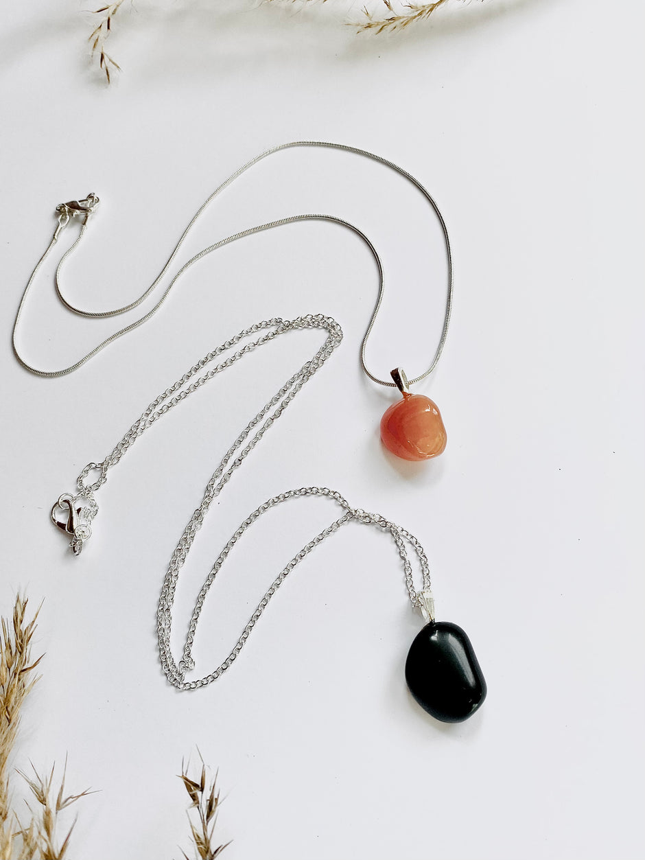 Obsidian or Carnelian Crystal pendant necklace with sterling silver chain