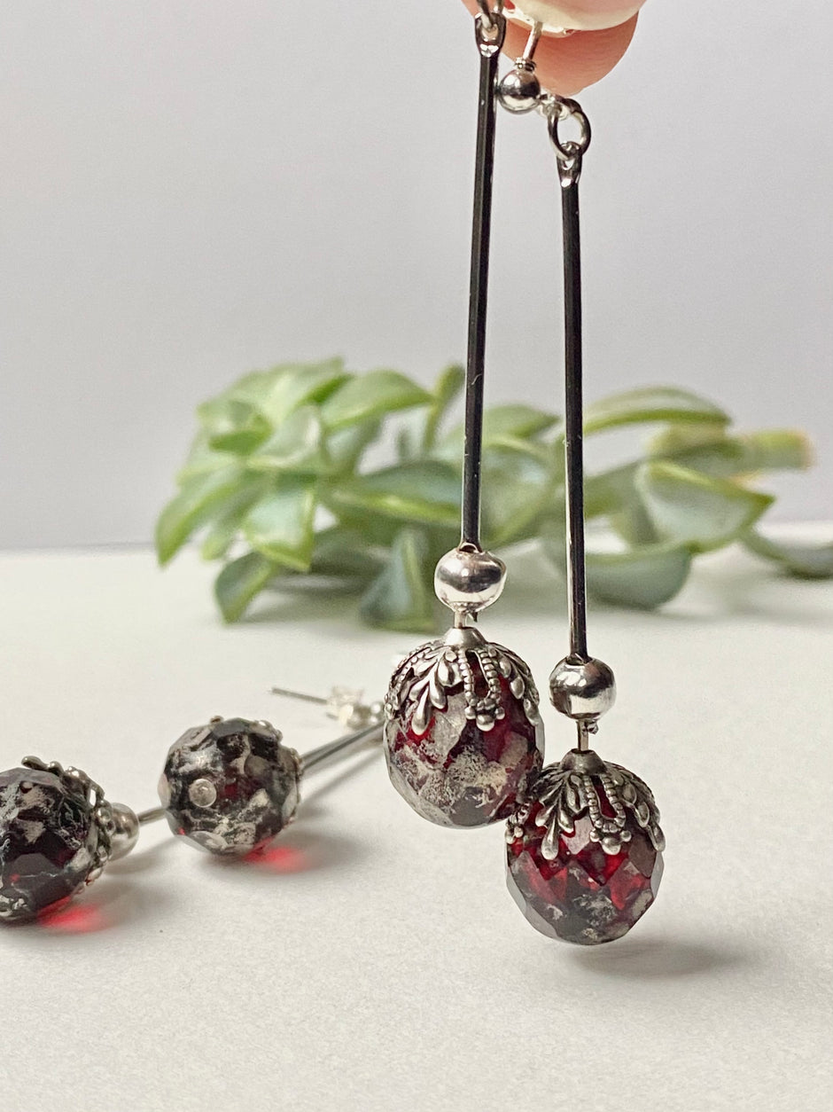 Ruby Red Faceted Vintage Glass Raspberry earrings