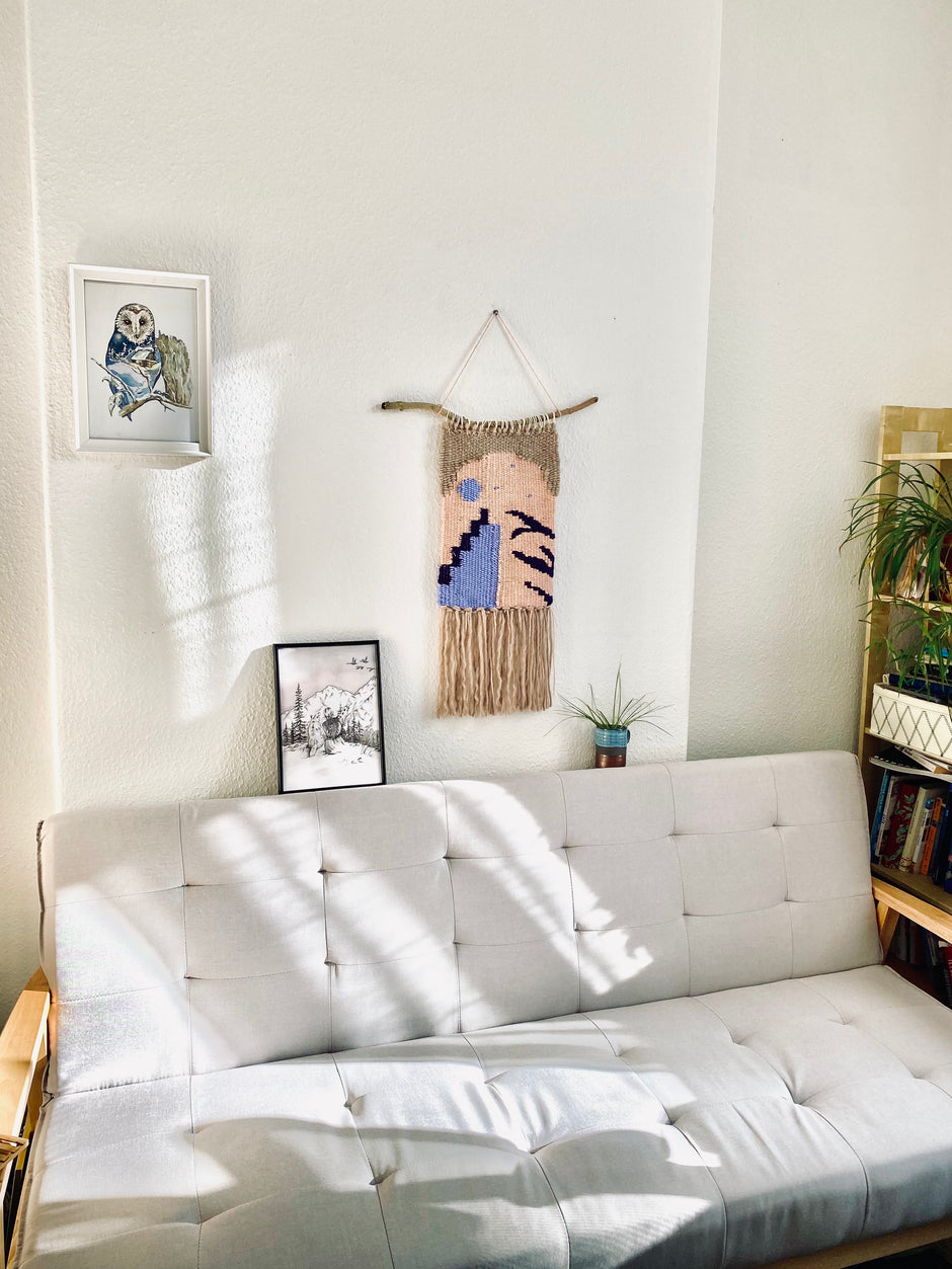 Moonshine Folk , large wall art contemporary modern pink purple folk tapestry weave rug wall hanging macrame tassel . decorative item